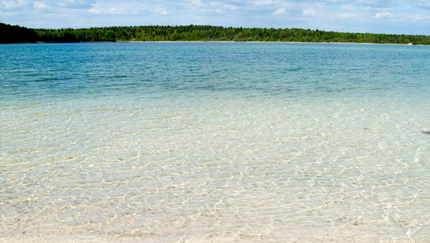 Очень красивый естественный водоем, расположенный в месте выхода на поверхность кембрийских глин. За счет этого вода очень чистая, прозрачная и с удивительный лазурным оттенком. Вода достаточно холодная, так что для длительной плавательной тренировки прихватите с собой гидрокостюм. Берег покрыт необычным белым песком, но на входе может быть острая галька и глина. Добраться сюда можно только на автомобиле. В озеро много неудобных заходов через камни, на песчаных пляжах в выходные довольно много народу с мангалами и шашлыками. В будни здесь довольно пустынно. Отдохнуть можно как семьей, так и шумной компанией. В окрестностях озера есть заброшенная церковь, старый парк, кое-где можно увидеть редкий вид северных орхидей. От Санкт-Петербурга сюда 90 км, так что поездку стоит планировать на целый день.