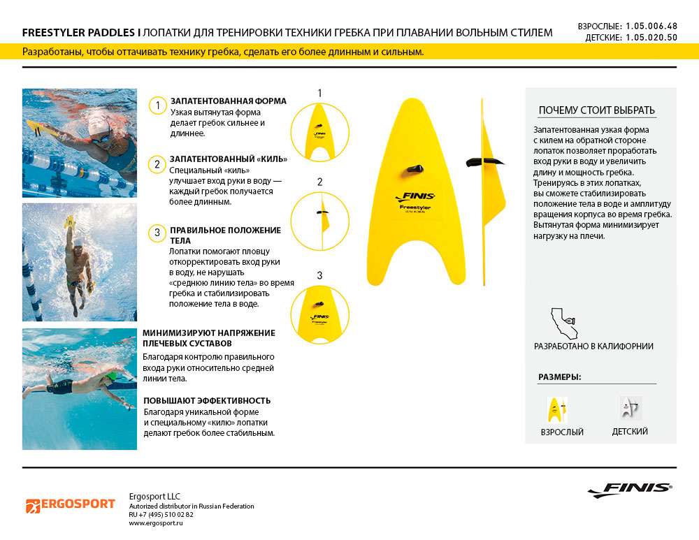 Специалисты Proswim рекомендуют лопатки Freestyler Hand Paddles Junior от Finis для тренировки вольного стиля.