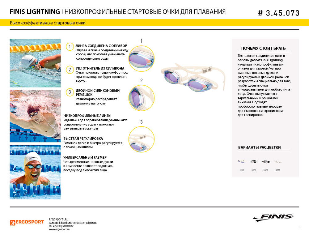 Специалисты Proswim рекомендуют очки Finis Lightning для соревнований и тренировок.