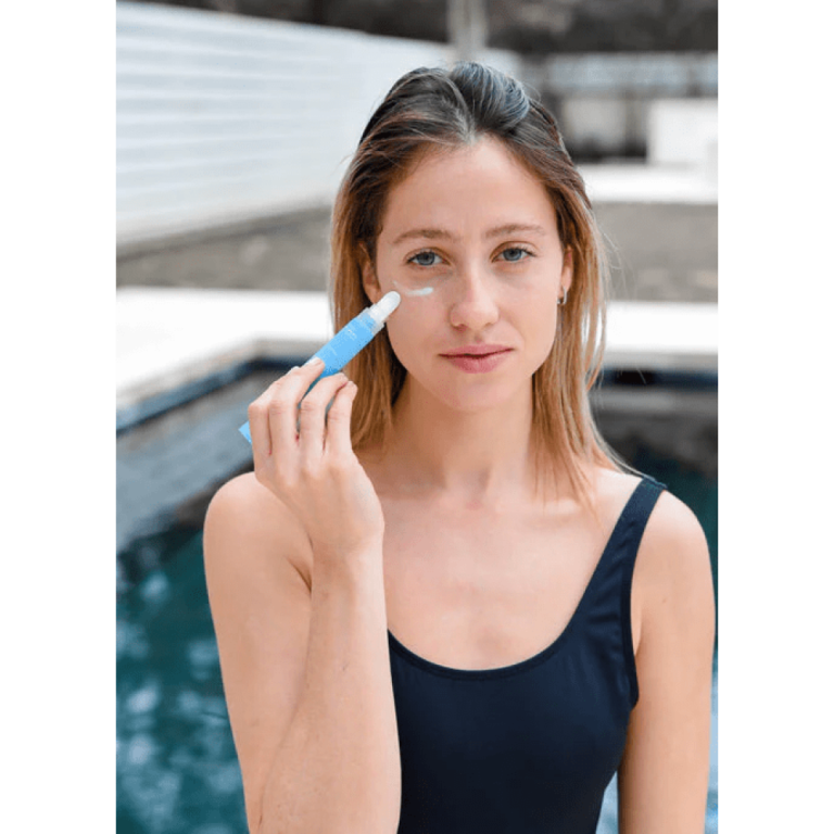 - Устраняет сухость под глазами после плавания, снимая покраснение и отечность.