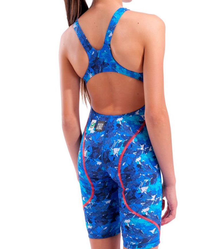 Гладкая внешняя поверхность ткани обеспечивает отличную гидродинамику. Внутри – эластичная сетчатая подкладка, которая призвана повысить мышечную компрессию и улучшить воздухопроницаемость. Плоские швы не ощущаются на теле и не натирают кожу. Они имеют новое, более эргономичное расположение, чтобы поддерживать ключевые группы мышц. Широкие, плотно прилегающие X-образные лямки открывают спину. Длина костюма – до колена. Модель одобрена Fina для участия в соревнованиях вплоть до профессионального уровня.