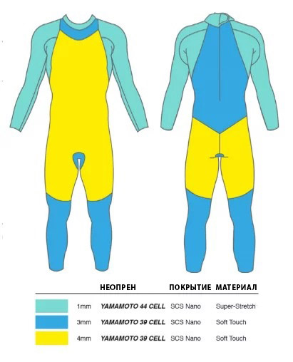 - неопрен Yamamoto #44 толщиной 1,5 мм в области рук и плеч для свободных и естественных движений