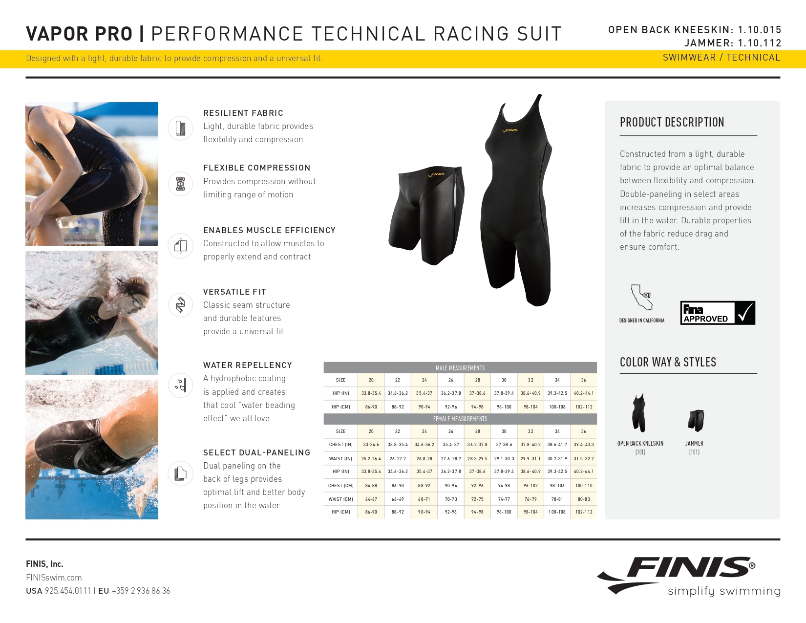 Гидрокостюм Vapor Pro от бренда Finis представляет собой универсальную и сбалансированную модель, которая станет оптимальным решением для любой пловчихи на соревнованиях. Данный гидрокостюм выполнен из легкого и одновременно очень прочного материала. Благодаря новейшим технологиям, разработанным инженерами Finis в главной лаборатории, расположенной в Калифорнии, гидрокостюм обеспечивает практически идеальный баланс между гибкостью и компрессией.