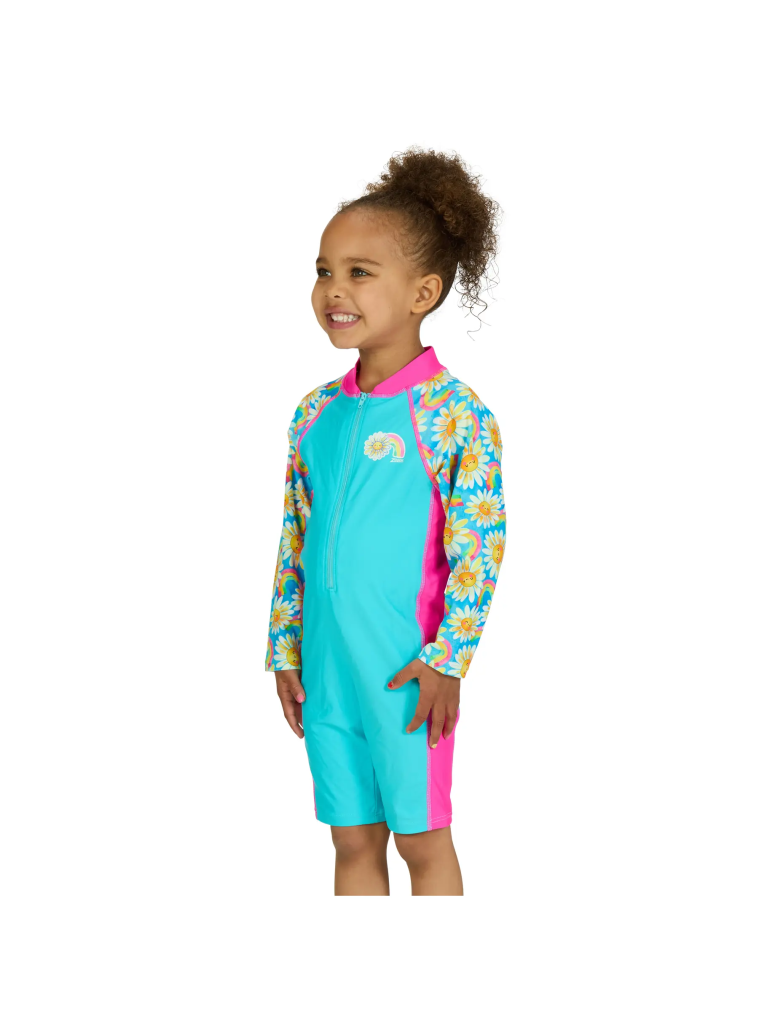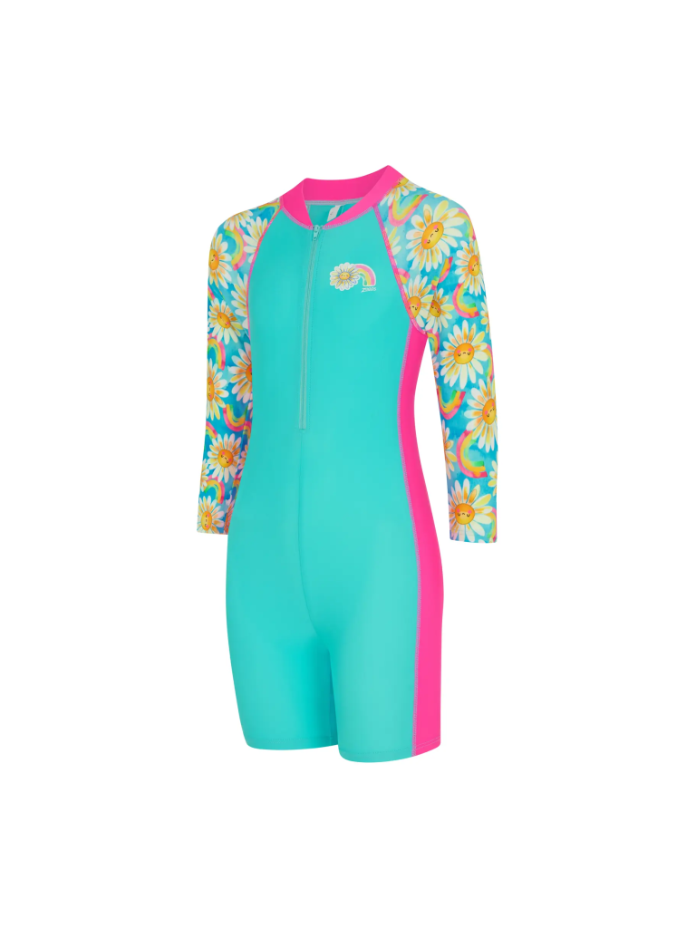 Daisy Long Sleeve All in One от популярного австралийского бренда Zoggs отлично защитит вашего ребенка от солнца во время занятий и активностей на открытых водоемах или пляже. Модель имеет удобную фронтальную молнию, а также отличается ярким и запоминающимся дизайном, который придется по душе юным поклонницам водных видов спорта.