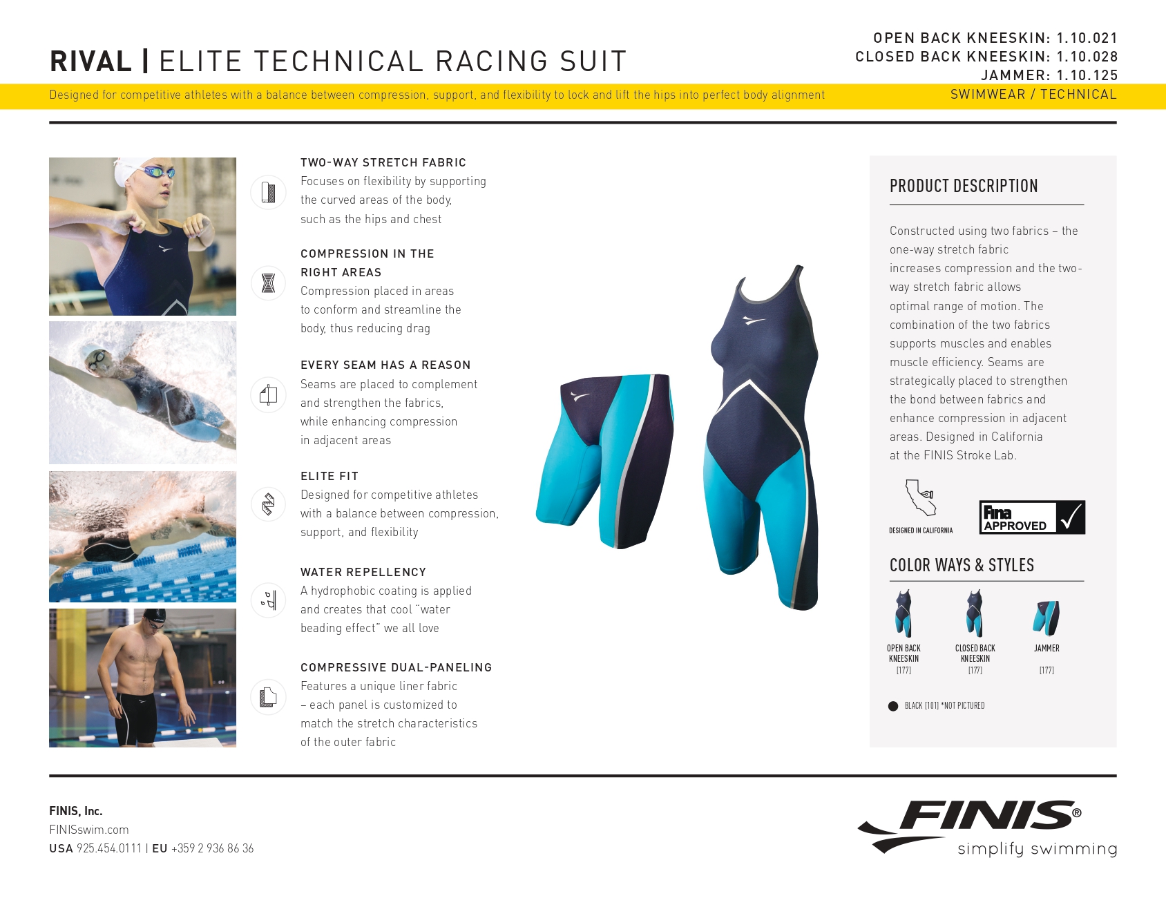 Finis Rival – стартовые гидрошорты профессионального уровня, в разработку технологии которых заложено 3 важнейших принципа: оптимальная компрессия, прочная структура и идеальная посадка. Эти основы позволили создать по-настоящему высокотехнологичные гидрошорты, которые способны предоставить в распоряжение спортсмена инновации элитного класса.