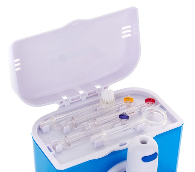 Кроме этого, направленная струя воды оказывает массажное воздействие на десны, улучшая микроциркуляцию крови и обеспечивая профилактику кровоточивости десен. Данная модель прибора отличается лаконичным дизайном и инновационными техническими характеристиками: вы сможете легко контролировать мощность потока, чтобы добиться максимально комфортных ощущений прямо во время процедуры. Корпус прибора оборудован сенсорной кнопкой включения, а на ручке предусмотрен магнитный держатель.