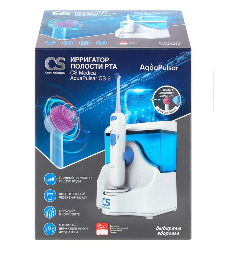 Ирригатор полости рта CS Medica AquaPulsar CS-2 – компактное и эффективное устройство для проведение гигиенических процедур ротовой полости. Прибор даёт возможность с помощью направленной струи воды быстро и деликатно устранять мягкий налёт на зубах, чистить межзубное пространство, пришеечные области зуба и прочие труднодоступные места, в которых могут скапливаться остатки пищи.