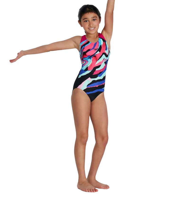 Слитный детский купальник Digital Placement Splashback Swimsuit от бренда Speedo украсит поход в бассейн яркими принтами! Веселье и удовольствие от занятий плаванием теперь будут наполнять буквально каждую тренировку вашей юной чемпионки.