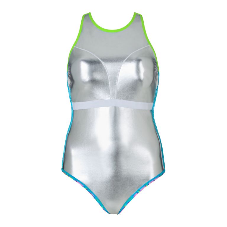 Также стоит отметить абсолютно новую экологичную ткань Ecofeel: материал более чем на 50% состоит из перарботанного пластика и волокон полиамида. Благодаря этому материал отличается повышенной устойчивостью к негативному воздействию хлора и ультрафиолета (UPF50+), не выцветая и не деформируясь даже спустя множество часов, проведенных в воде. Для поддержки в области груди купальник имеет съемные чашечки. К прочим особенностям данной модели купальника стоит отнести перекрестные широкие лямки для сочетания стабильности посадки со свободой движения в плечах, яркий сплошной принт и средний вырез в области бедра.