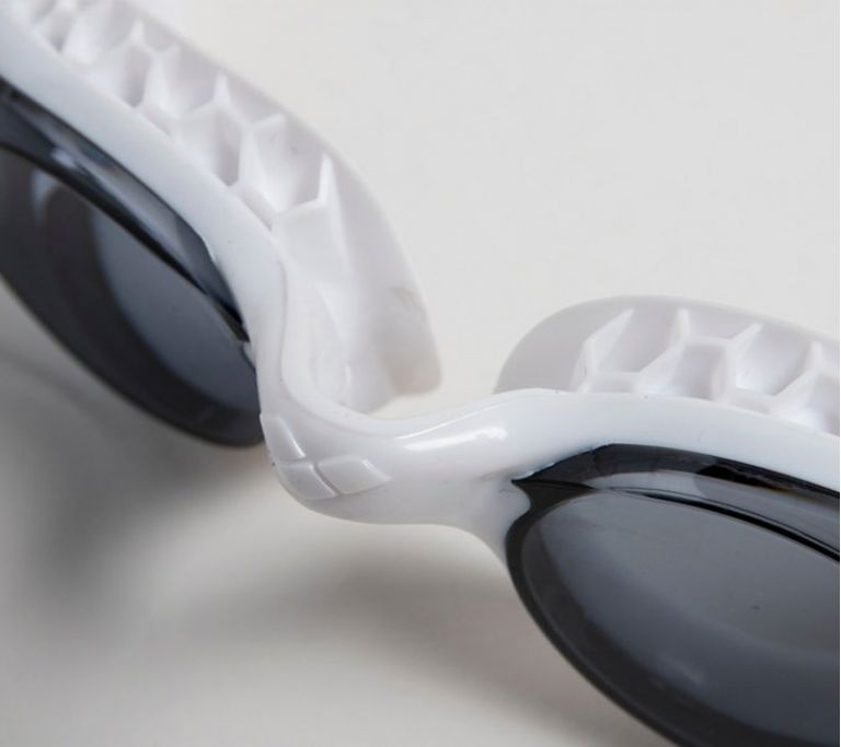 Раздвоенный силиконовый ремешок фиксируется при помощи боковых клипс. Саморегулируемая переносица гарантирует точную посадку. Лаконичный дизайн Arena Air Soft придется по душе как пловцам, так и пловчихам.