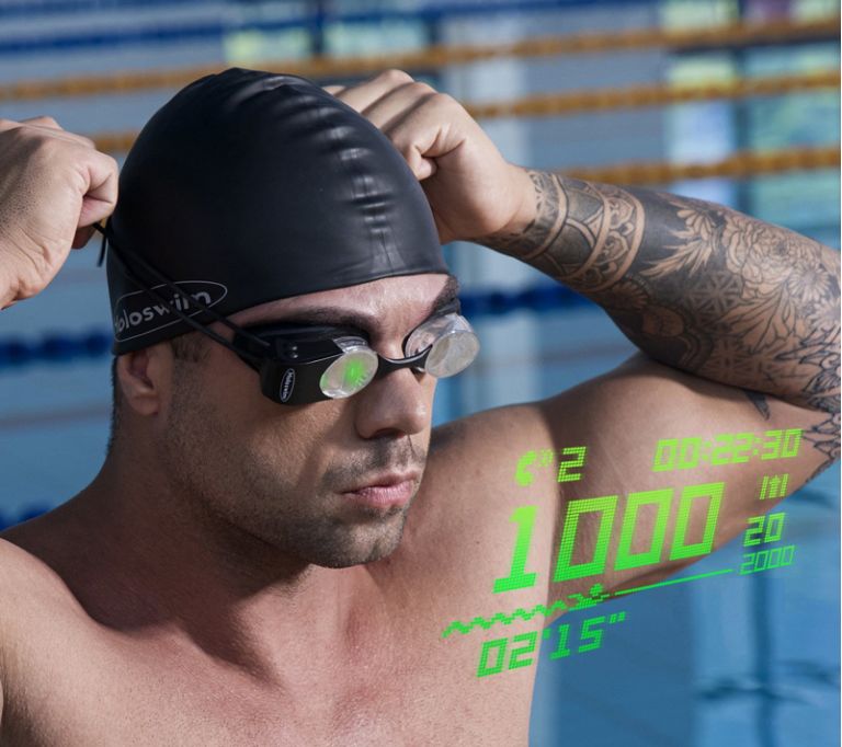 - плавательные очки с интеллектуальным чипом искусственного интеллекта и технологией дополненной реальности