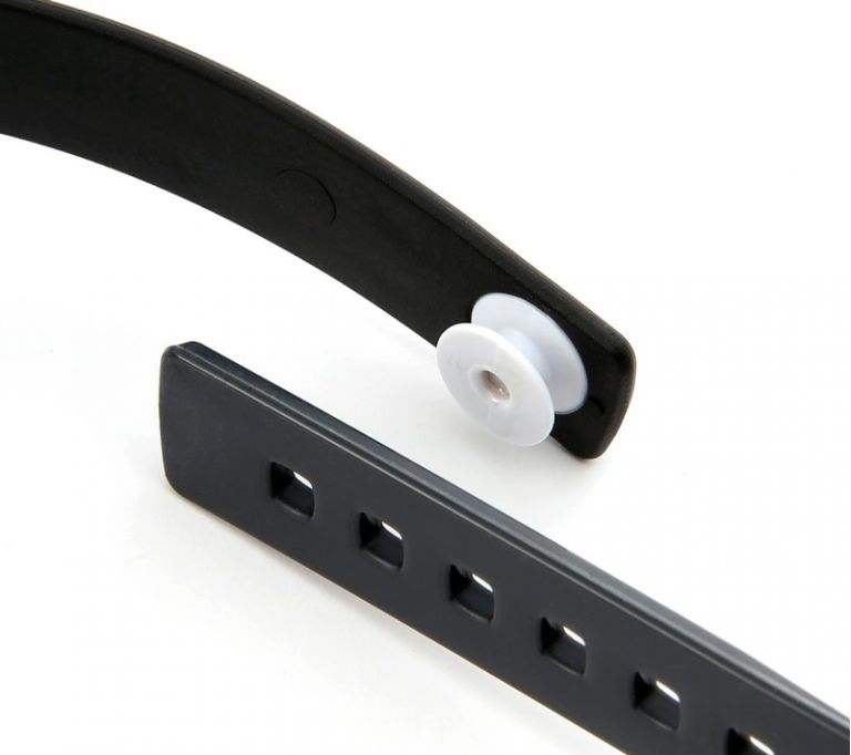 Ремешок этих очков выполнен из высококачественного силикона и обладает инновационной конструкцией: у него нет зажимающей клипсы для регулировки размера. Вместо этого на удлинённых дужках имеются специальные кнопки, а на самом ремешке – отверстия для подгонки размера. Таким образом, определив подходящую длину ремешка, вы плотно фиксируете его кнопками боковых дужек. Натяжение ремешка, в отличие от классического варианта с зажимной клипсой, никак не влияет на его длину, следовательно, надёжность индивидуальной посадки очков останется неизменной даже во время интенсивных тренировок и стартовых заплывов.