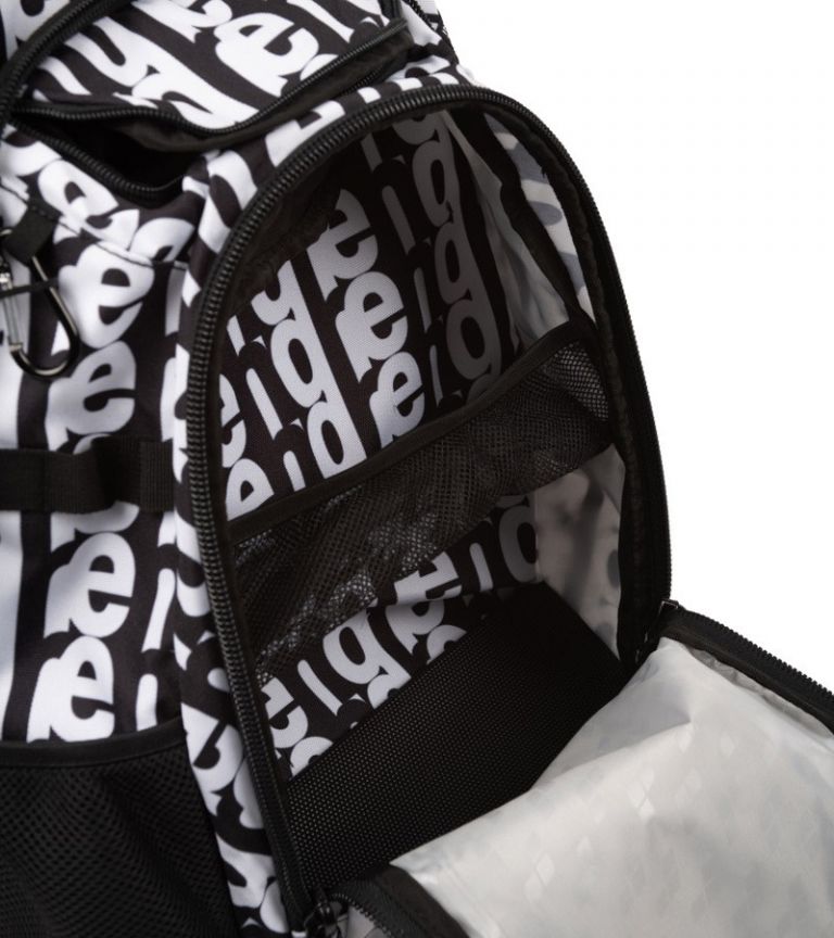В области дна рюкзака имеется большое отделение для обуви. Спереди - одно отделение на молнии, сзади - большое отделение, предназначенное для крупных вещей и тренировочных аксессуаров. Два боковых сетчатых кармана идеально подойдут для переноски бутылок с водой. Еще одним преимуществом рюкзака Fastpack 3.0 Allover от Arena является простая система ремней. Сетчатая спинка и лямки с набивкой обеспечивают максимальный комфорт при носке. В дополнение ко всему перечисленному, внутрь рюкзака вложен отдельный мешок с завязками для влажной экипировки.