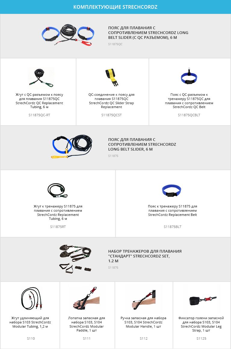 Также существует пояс StrechCordz Replacement Belt к тренажеру для плавания с сопротивлением StrechCordz Safety Long Belt Slider.