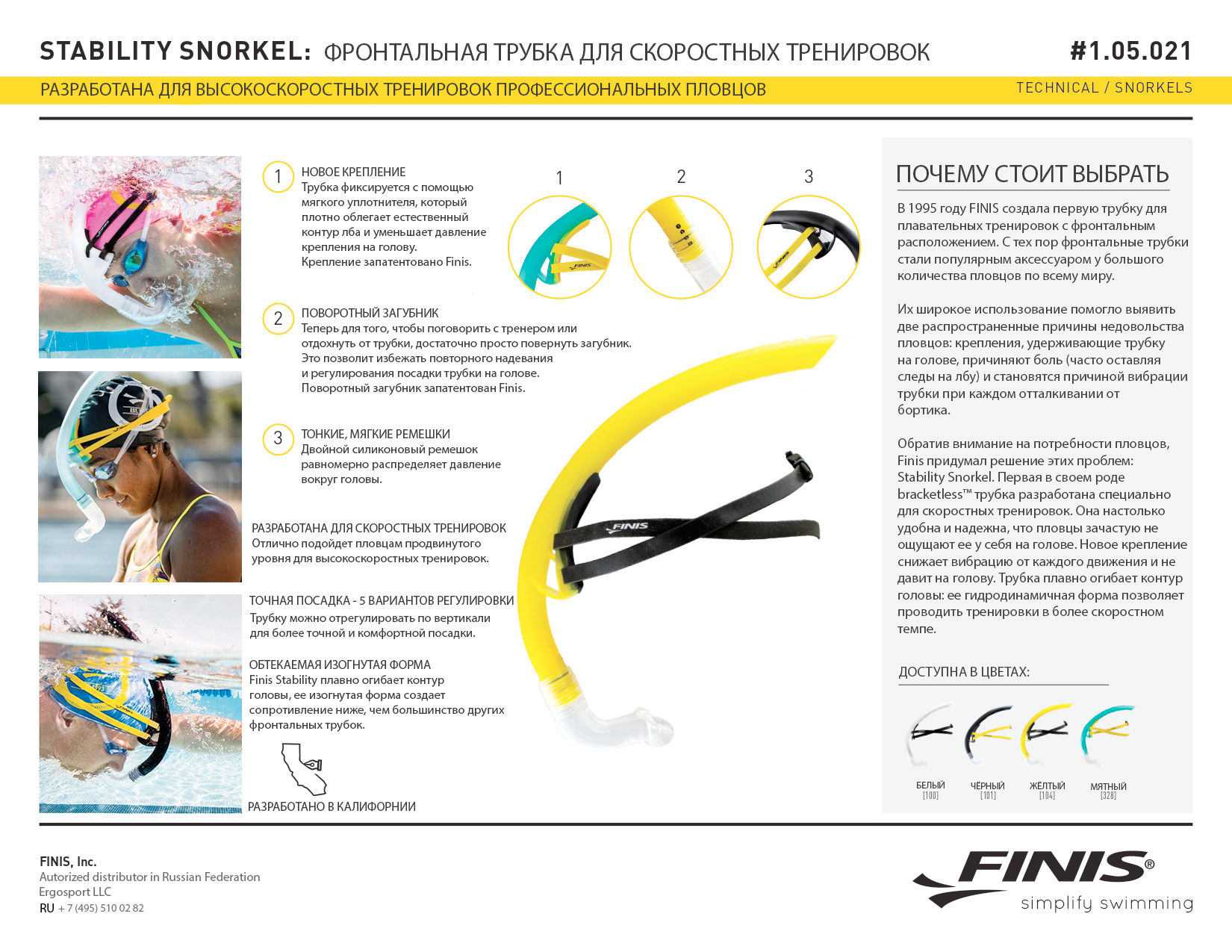 Бонус: стильные новые расцветки – белый, неоновый мятный, а также классические расцветки Finis – желтый и черный. Продуктивные и комфортные тренировки с Finis Stability Snorkel вам обеспечены!